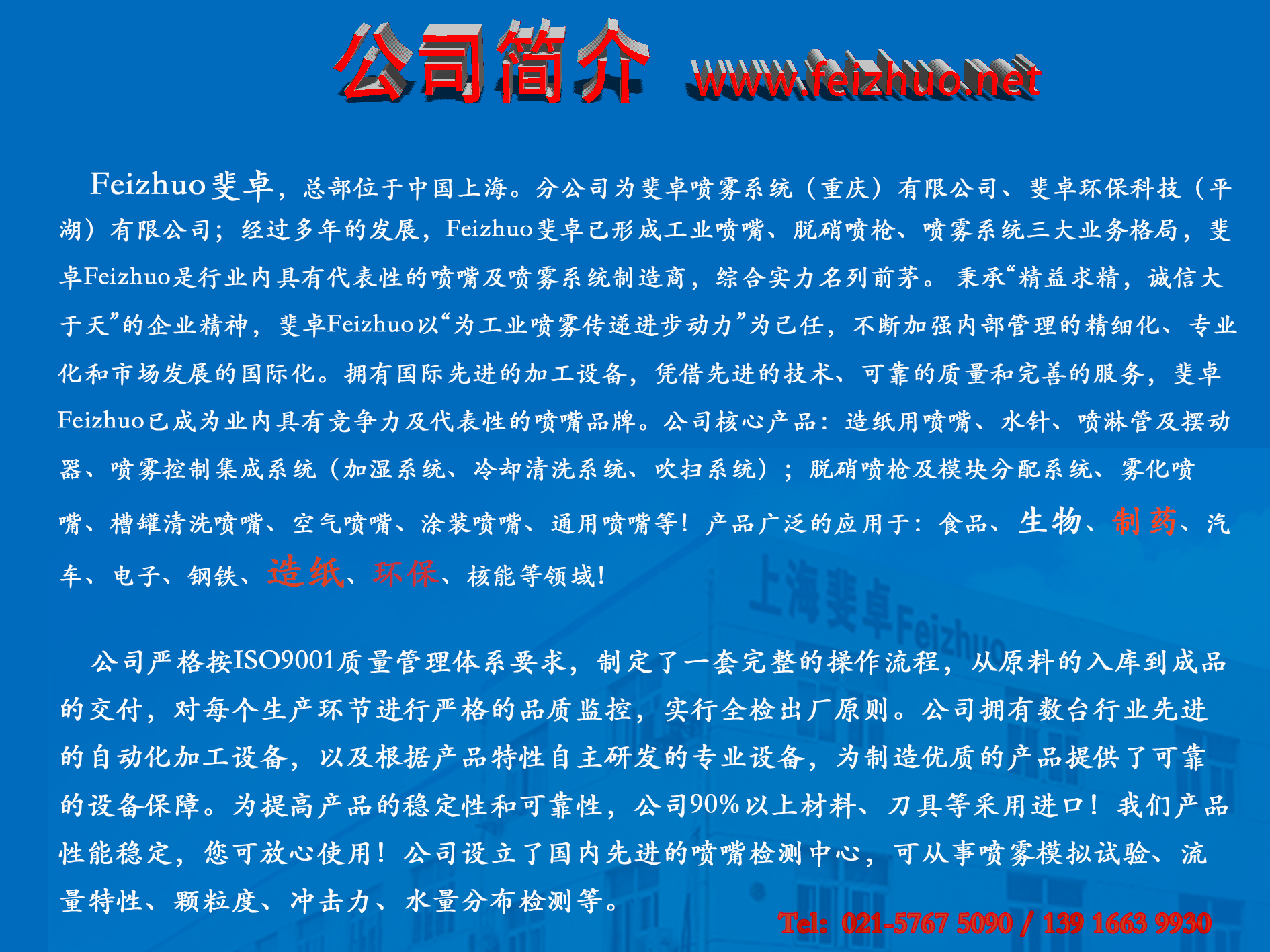 | 上一條:上一篇:金屬精細霧化噴嘴-Feizhuo斐卓 | 下一條:下一篇:工業(yè)噴嘴廠家高端實驗室-上海斐卓Feizhuo |