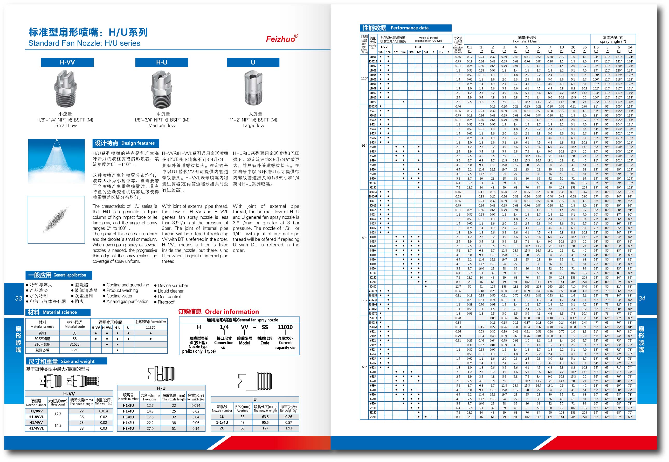 扇形噴嘴選型參數表-Feizhuo斐卓